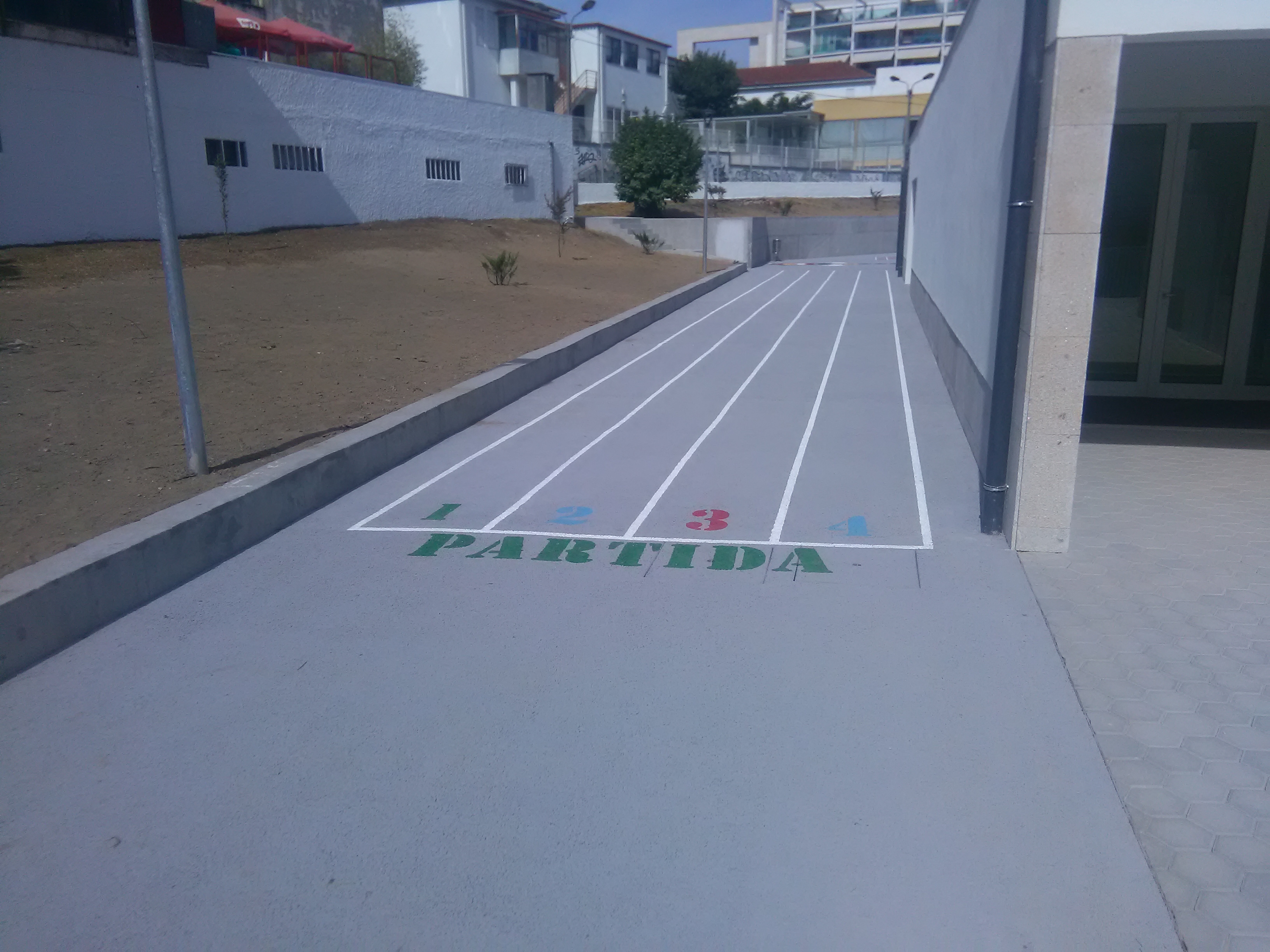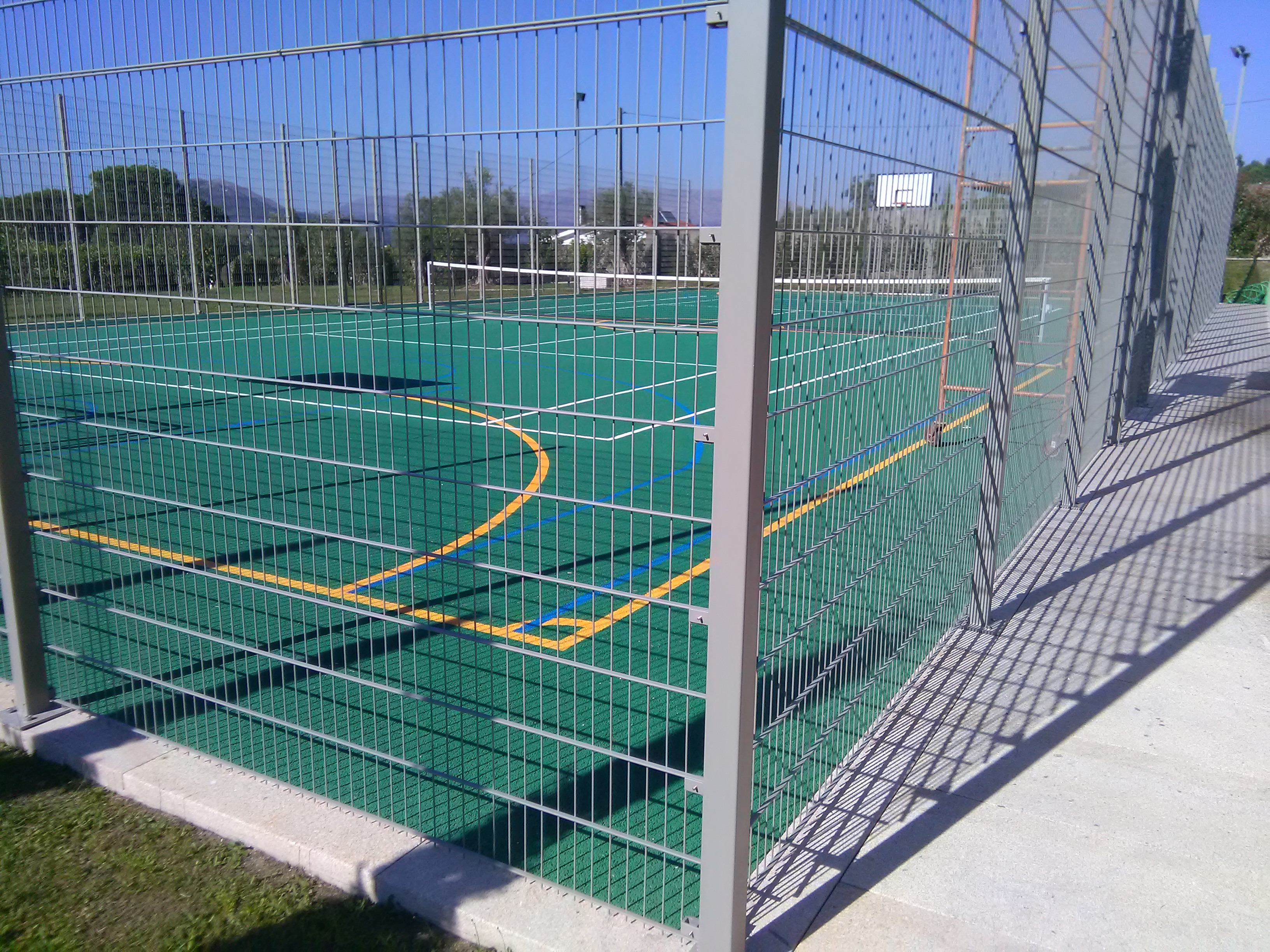 Contruímos polidesportivos em betão poroso e relva sintética.