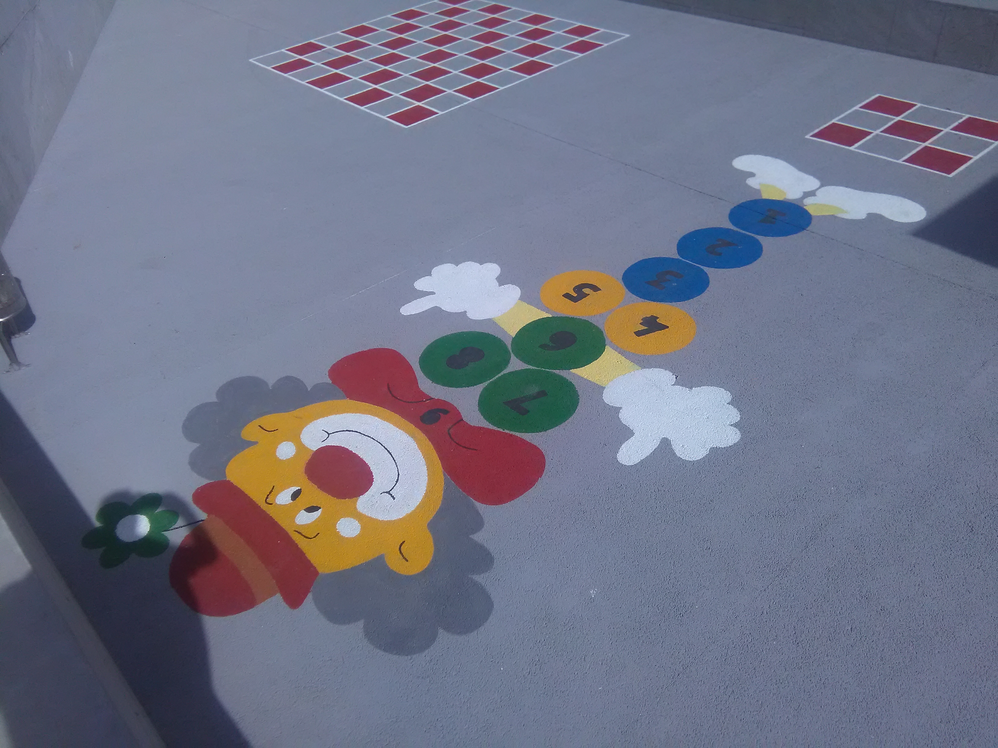 Realização de betão poroso decorativo com resina ou em cimento branco, pintura de betão poroso e realização de jogos didáticos.