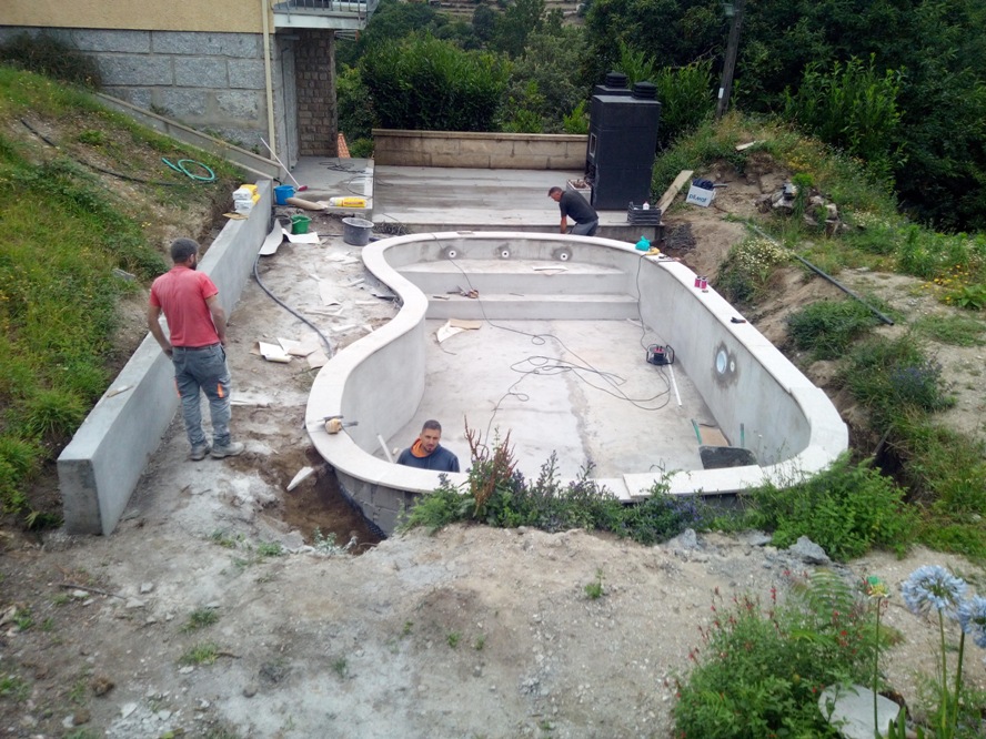 - Piscinas em betão armado são cheias de uma só vez de betão para garantir a sua estanquecidade com uma garantia de 25 anos